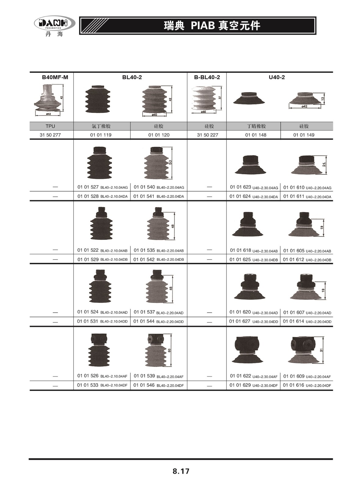 瑞典PIAB派亚博真空元件,真空吸盘,机械手吸盘,B型吸盘,D型吸盘,P型吸盘,U型吸盘,F型吸盘,OC型吸盘。U2.3150284SC U3.3150285SC U4.3150114 B5.3150286 U6.3150115 U8.3150116 B8.3150287 U10.3150117 B10-2.3150101 U15.3150118 F15.3150125 B15-2.3150230 D15-2.3150135 3150196 3250003 3251001 3250085 3251002 3251004 U20.0101144 B20.0101101 B20MF.0101111 BL20-2.0101115 D20-2.0101123 F20.0101130 F25.0101131 B30-2.0101103 BL30-2.0101118 B40.0101106 F40-2.0101135 U50-2.0101150 B50.0101107 BL50-2.0101121 F50-2.0101137 B75.3150107P F75.3150131P B110.3150108P F110.3150132P B150.3150109P FP200.3350148 P300.